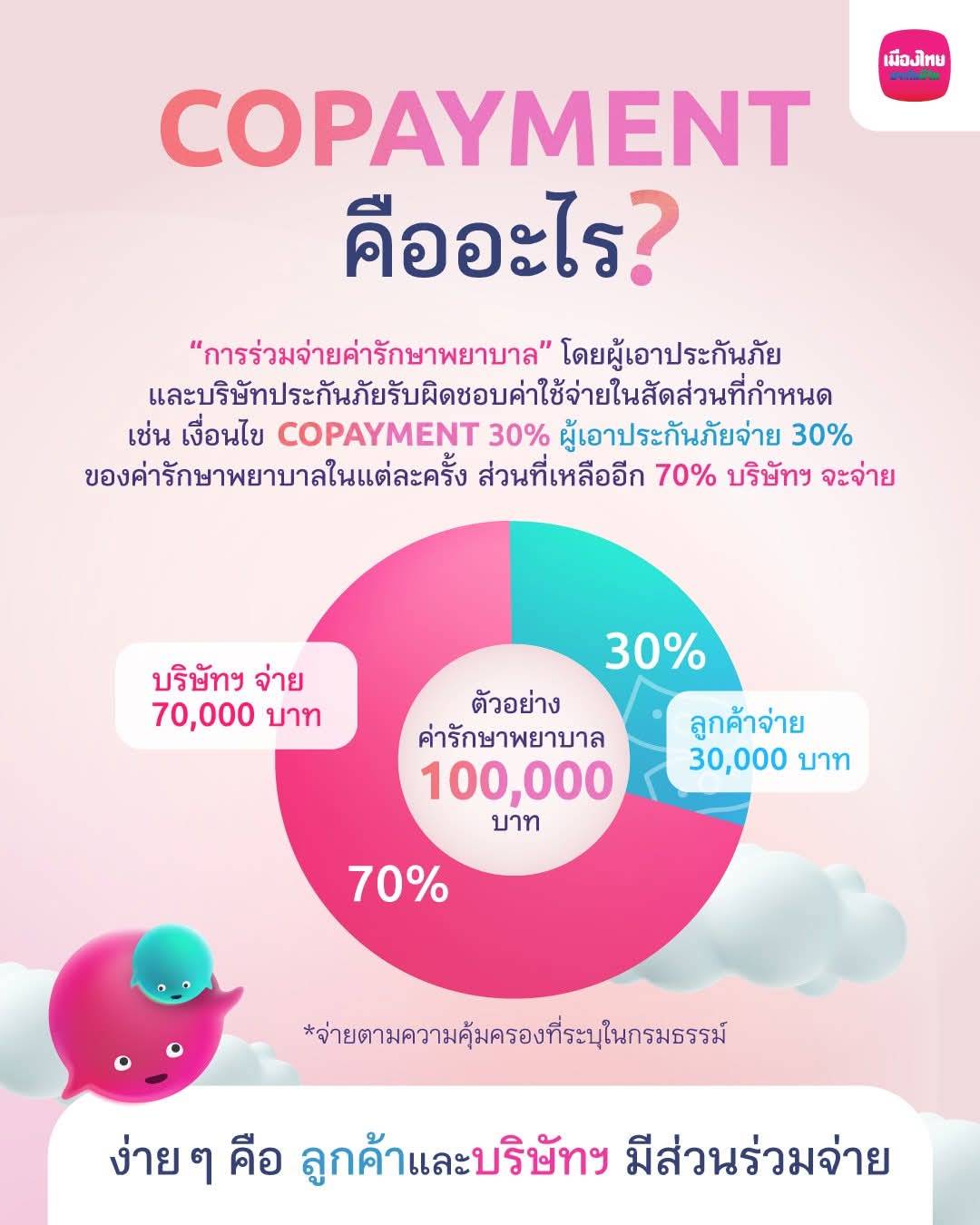 หากทำประกันสุขภาพตั้งแต่วันที่ 21 มีนาคม 2568 เป็นต้นไป จะต้องเข้าเงื่อนไข Copayment ส่วนร่วมจ่าย ปีต่ออายุ หลายท่านได้ยินข่าวเรื่อง Copayment ปีต่ออายุ อาจจะกังวลว่าไม่คุ้ม กลัวว่าจะต้องจ่ายร่วม 30-50%
