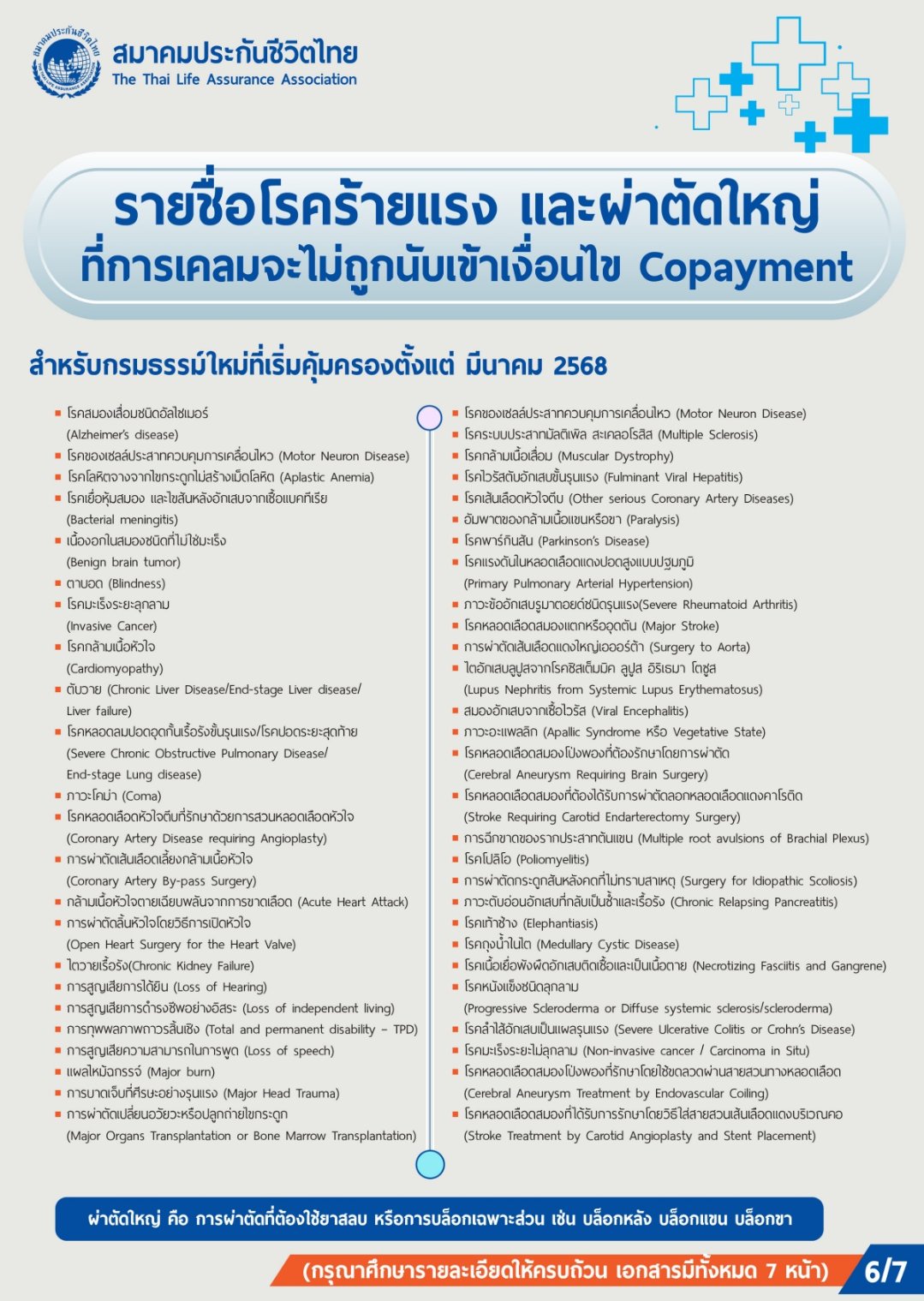 กรณีโรคที่ยกเว้นไม่นำมาคำนวณ COPAYMENT มีดังนี้