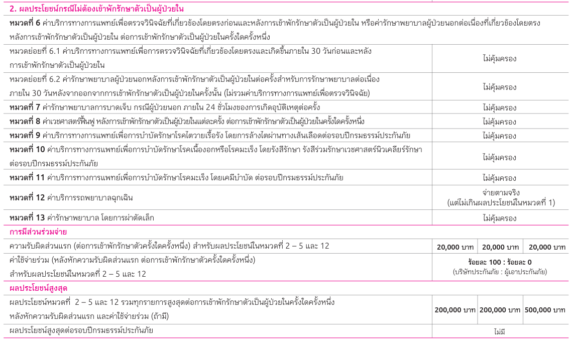 ตัวอย่างความคุ้มครองสุขภาพเอ็กซตร้าแคร์พลัส