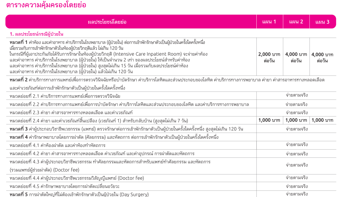 จุดเด่นประกันสุขภาพเหมาจ่ายเอ็กซตร้าแคร์พลัส
