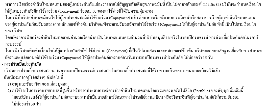 3. เงื่อนไขต่ออายุ และต่ออายุ Copayment