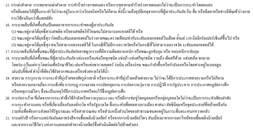 2. ข้อยกเว้นของประกันสุขภาพ 21 ข้อ