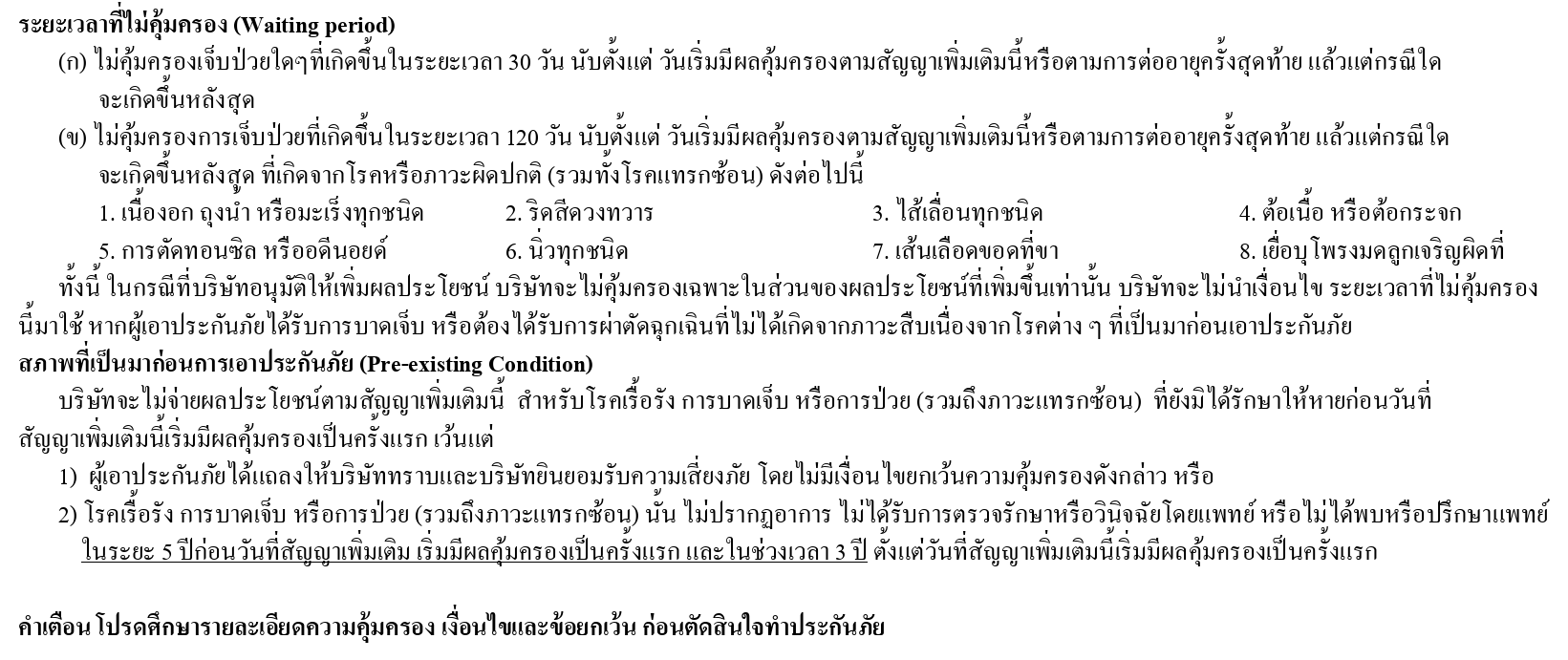 1. หากมีประวัติเจ็บป่วย / แอดมิดนอนโรงพยาบาล ทางบริษัทอาจจะขอตรวจสุขภาพ โดยต้องชำระเบี้ยและกรอกใบสมัครเข้ามาให้บริษัทพิจารณา