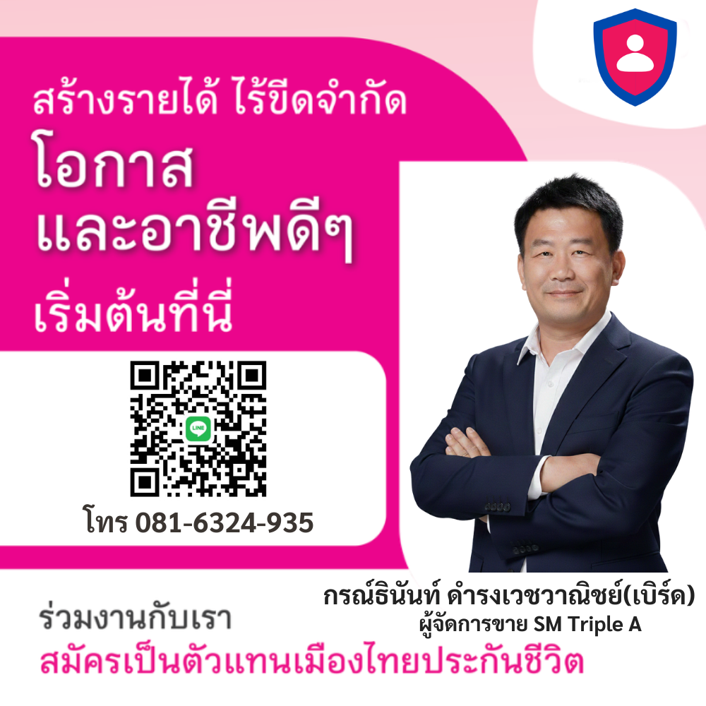 สมัครตัวแทนกับประกันชีวิต อาชีพอิสระเรื่องเวลาการทำงาน รายได้ ความก้าวหน้า อาชีพสร้างอนาคต มีชื่อเสียงเกียรติยศ และเป็นประโยชน์ต่อสังคม เหมาะสมกับทุกอาชีพไม่ว่าจะเป็นพ่อค้า แม่ค้าออนไลน์ นักศึกษาจบใหม่ พนักงานบริษัท ข้าราชการหรือรัฐวิสาหกิจ ก็สามารถเข้ามาสมัครตัวแทนประกันชีวิตและที่ปรึกษาการเงินกับเราได้ ไม่ว่าจะเป็นเจ้าของกิจการและนักธุรกิจ กลุ่มวิชาชีพเฉพาะ เช่น แพทย์ พยาบาล นักบัญชี วิศวกร ทนายความ สถาปัตย์ พ่อบ้าน แม่บ้าน วัยเกษียณ หรือใครที่กำลังว่างงาน ตกงาน หรือถูกลดเงินเดือน ก็สามารถเข้ามาสมัครตัวแทนประกันชีวิตกับเราได้ ต่อยอดทางธุรกิจ เป็นรายได้เสริม ระหว่างตกงานหรือกำลังหางานประจำไม่ว่าจะทำแบบ Parttime หรือ Fulltime ก็สามารถสมัครตัวแทนประกันชีวิตได้