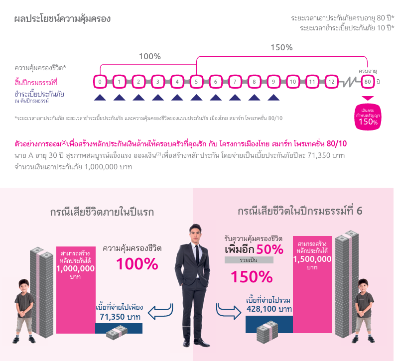 อาจจะคิดว่าอาจจะไม่อยู่ถึงรับเงินคืน ดังนั้นแบบประกันชีวิตสมาร์ทโพรเทคชั่น 80/10 คุ้มครองชีวิตถึงอายุ 80 ปี