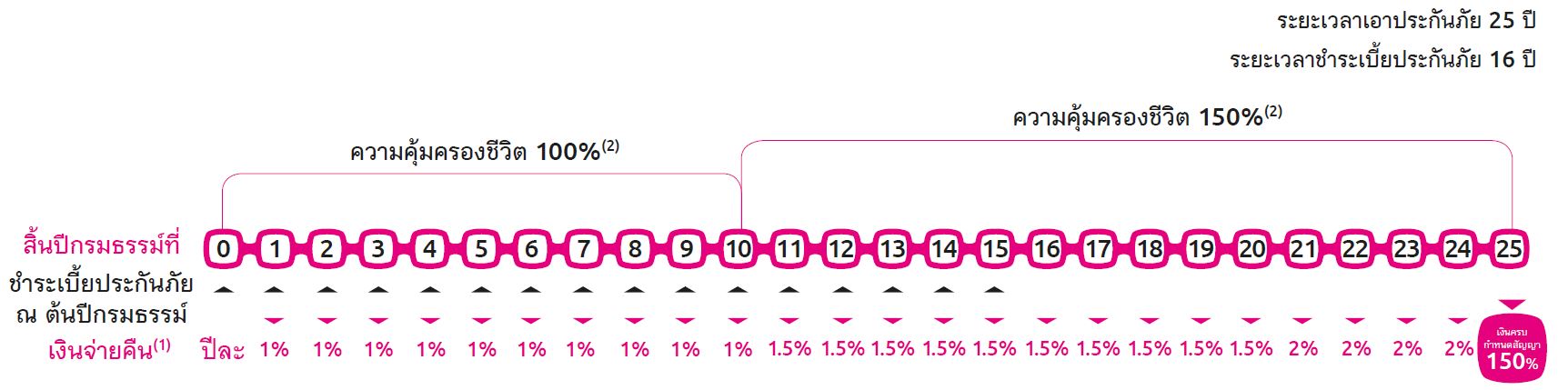 รับเงินจ่ายคืนทุกปี รวม 33% และเงินครบกำหนดสัญญา สูงถึง 150%